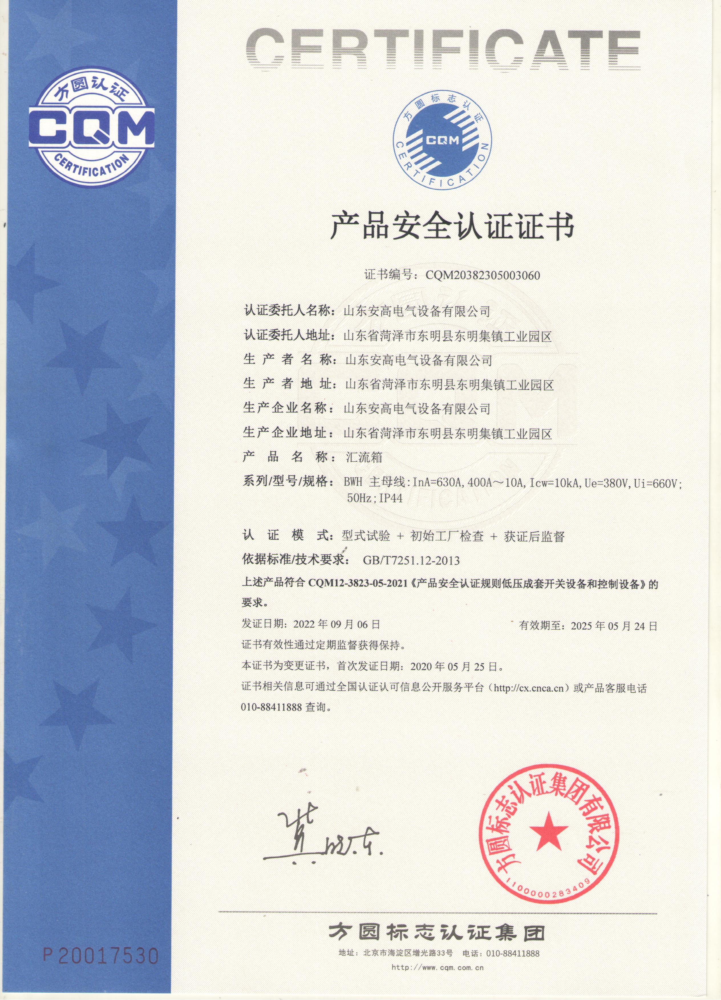 • 產品安全認證證書
